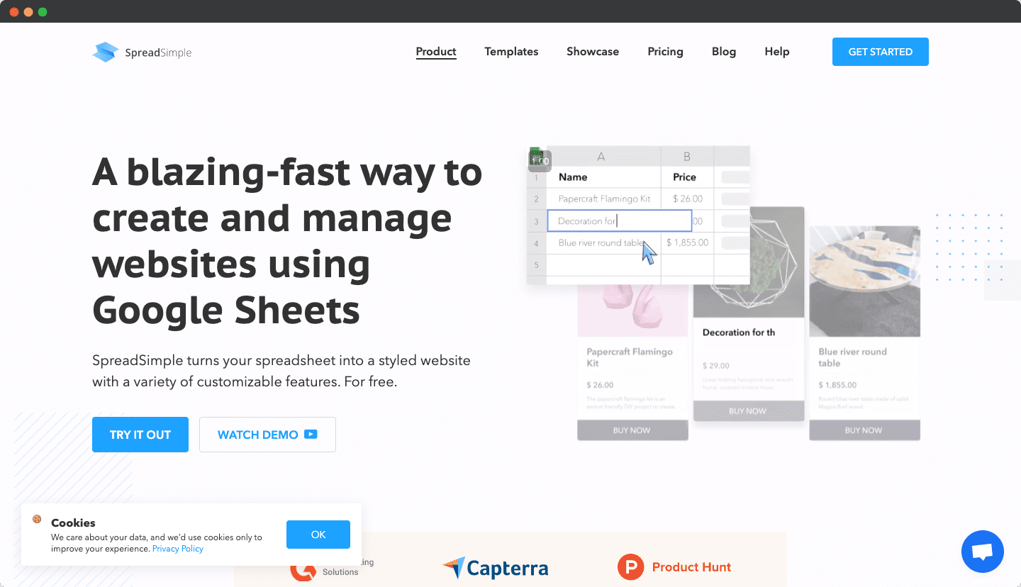Vous avez toujours voulu créer, gérer et mettre à jour une magnifique vitrine numérique pour présenter votre activité et attirer les clients ? SpreadSimple est la solution qu'il vous faut. Cet excellent outil no-code est la porte d'entrée pour créer votre propre site et mettre à jour votre interface utilisateur facilement et rapidement.