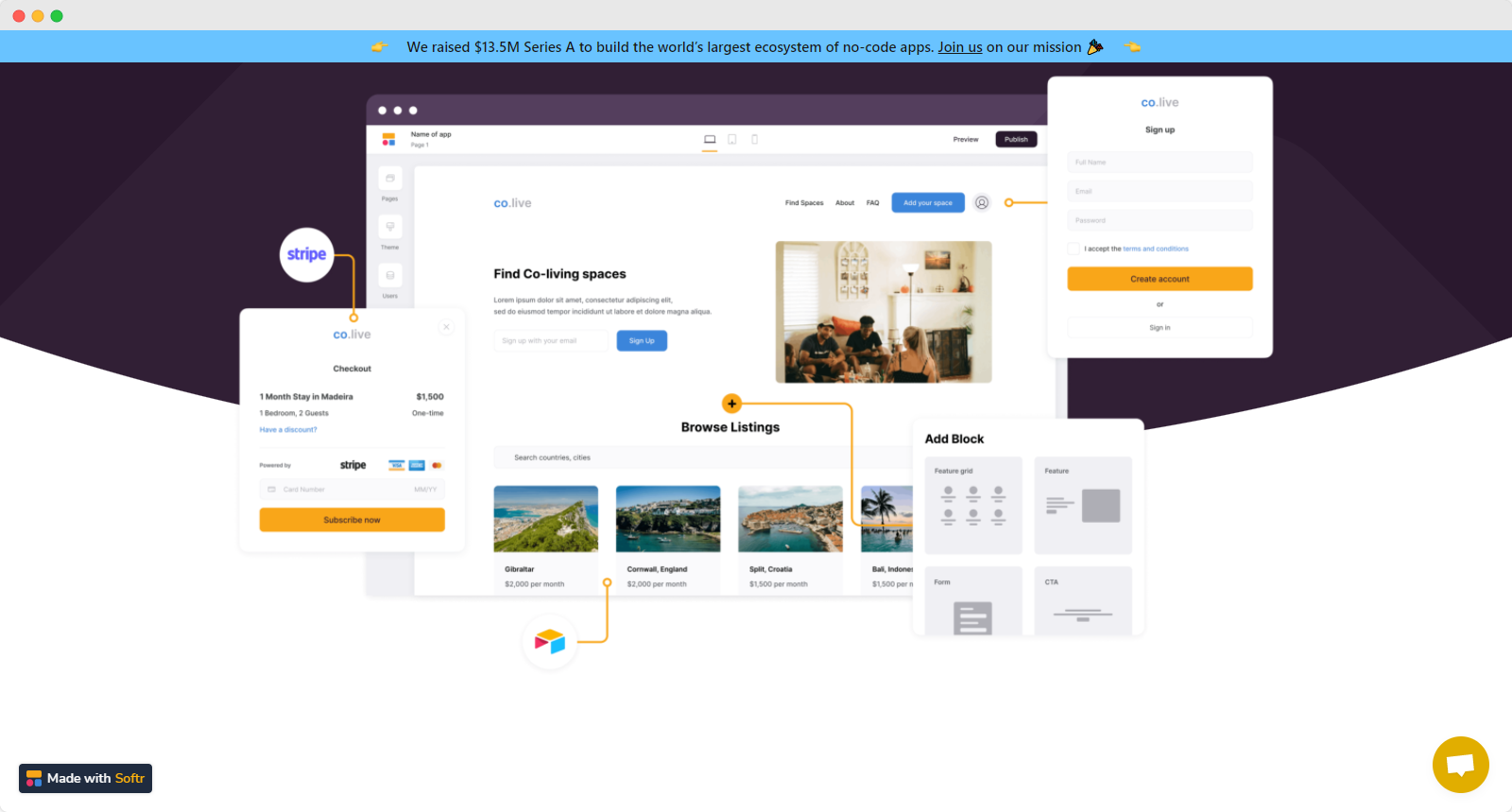 Passons maintenant à Softr, l'étoile montante du développement d'applications no-code , qui a récemment levé 13,5 millions de dollars, et qui propose également de nouvelles fonctionnalités dans sa dernière mise à jour. En voici un bref aperçu. Tout d'abord, ils ont annoncé quelques améliorations à venir de leurs fonctionnalités de formulaire, probablement pour augmenter les possibilités car c'est l'un des blocs de construction les plus populaires. Un ajout rapide a également été fait, une petite (mais utile) fonctionnalité : vous pouvez maintenant changer le nom de votre application en un clic dans le nouvel éditeur. Enfin, le moteur de recherche a été optimisé pour inclure des fonctions de tri des URL : très pratique lorsque vous apportez des modifications à une section particulière de votre application.