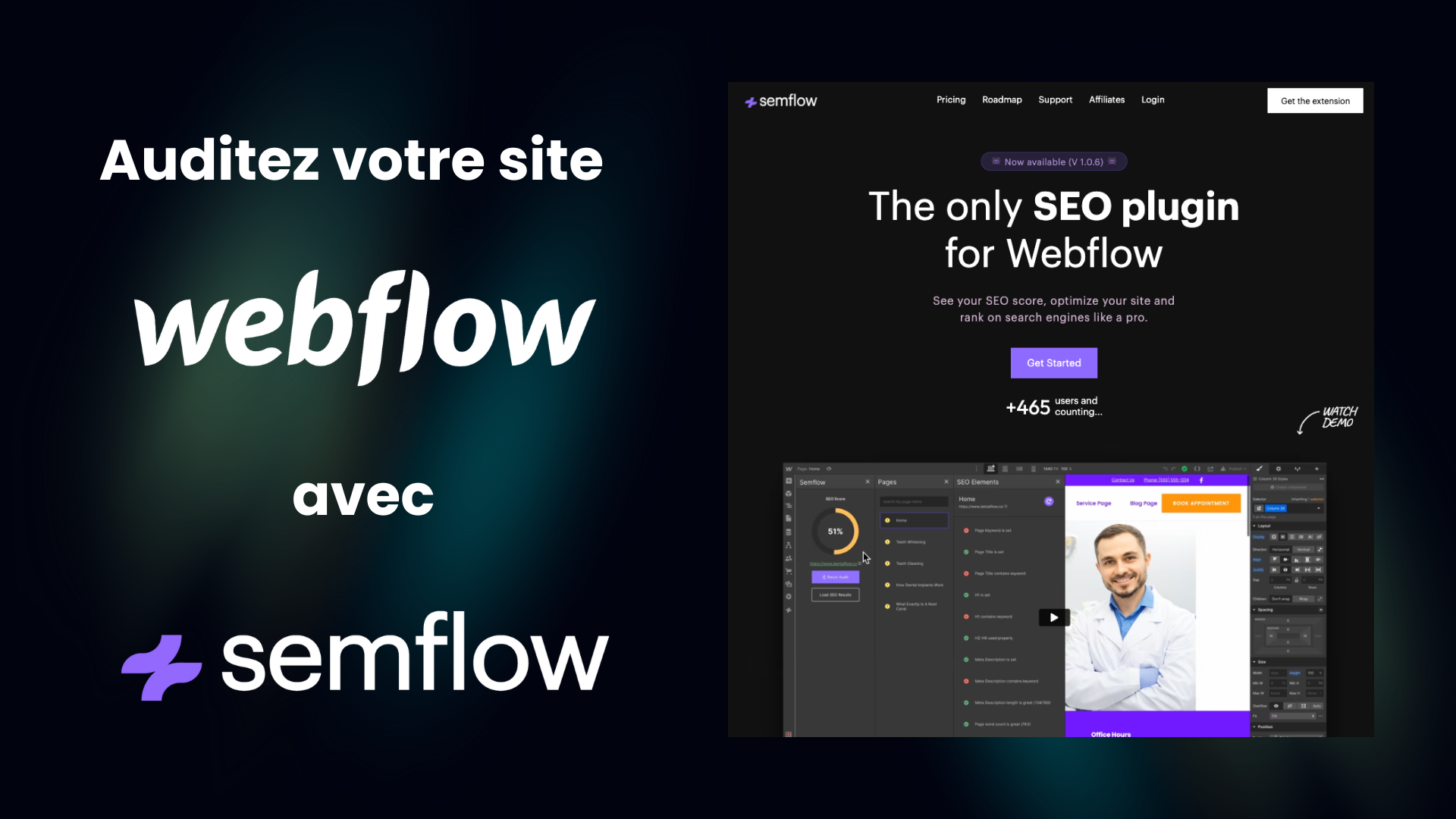 Chez Webflow, une nouvelle extension est disponible : Semflow. Avec ce plugin, réalisé exclusivement pour Webflow, vous pouvez :