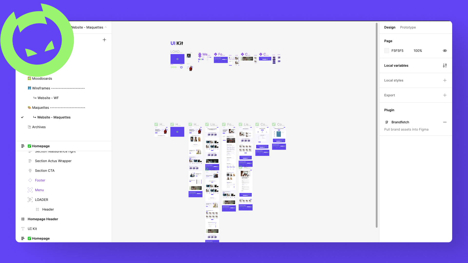 Après plusieurs itérations, nous avons opté pour la version ci-dessous. Au-delà de l'interface utilisateur que nous avons créée, nous avons intensifié les couleurs choisies avec une nuance de violet plus riche et avons décidé de l'associer à un vert flash. Cette combinaison de couleurs, associée à un design dit "corporate", crée une identité atypique et mémorable.